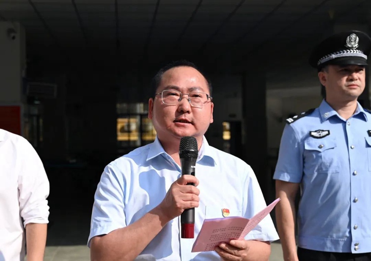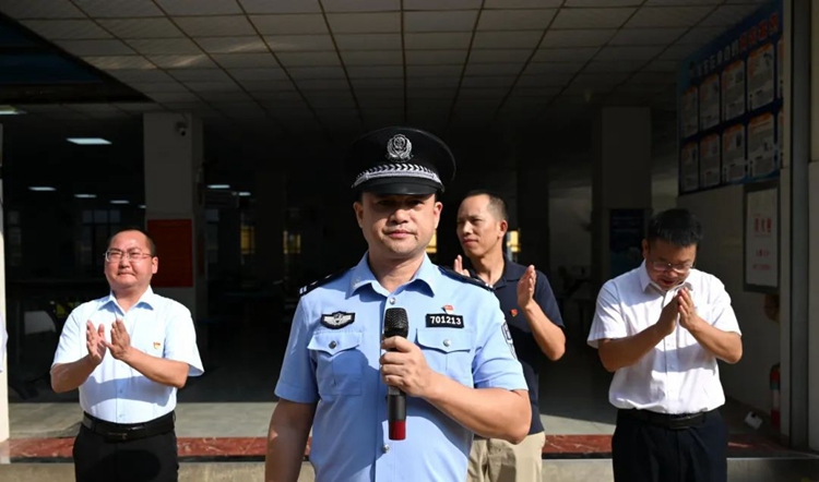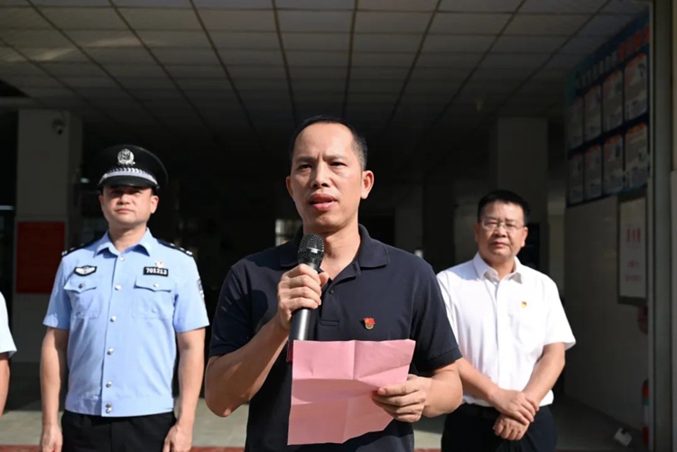 平果市公安局副局長(zhǎng)陸榮康宣布“校園反詐食堂”正式啟用