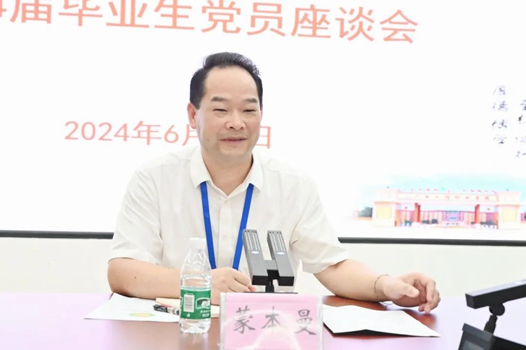 座談會(huì)上,黨委書記、督導(dǎo)專員蒙本曼代表學(xué)校黨委向與會(huì)畢業(yè)生黨員順利畢業(yè)就業(yè)表示祝賀,對(duì)他們?yōu)閷W(xué)校發(fā)展所付出的努力表示感謝,并提出了四點(diǎn)期望: