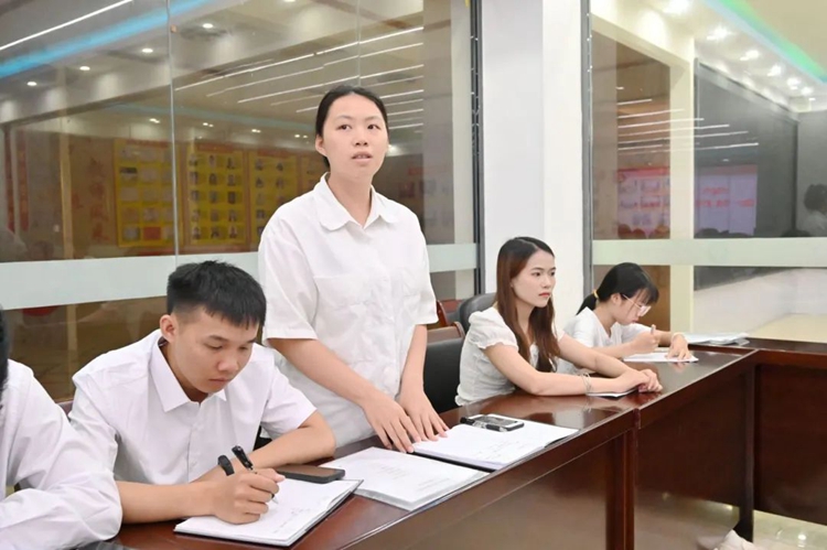 圖為黨委辦公室副主任黃香琴布置2024屆畢業(yè)生黨員組織關(guān)系轉(zhuǎn)移工作