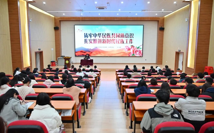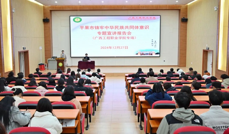 為全面貫徹落實黨的二十屆三中全會精神,深入學習貫徹習近平總書記關(guān)于加強和改進民族工作的重要思想,貫徹落實習近平總書記關(guān)于廣西工作論述的重要要求,增強鑄牢中華民族共同體意識的責任感和使命感,2024年12月27日上午,在圖文信息大樓三樓學術(shù)報告廳,我校舉辦鑄牢中華民族共同體意識專題宣講報告會。學校黨員干部、專任教師、輔導員和學生代表等200多人參加宣講報告會,報告會由黨委辦公室副主任黃香琴主持。