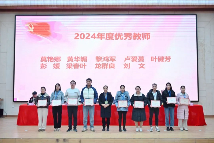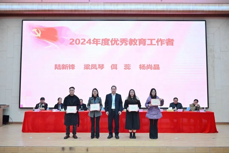黨委書記、督導專員蒙本曼講話,他代表學校黨委對2024年為學校發(fā)展付出辛勤勞動、做出積極貢獻的領導和全體教職工表示衷心感謝!向獲獎的集體和個人表示熱烈祝賀!并對全體教職工提出了希望和要求: