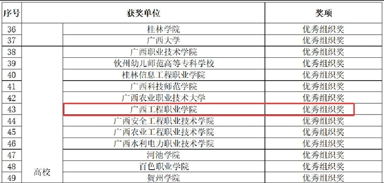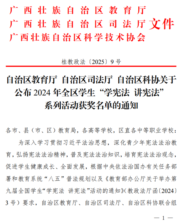 近日,自治區(qū)教育廳、自治區(qū)司法廳、自治區(qū)科協(xié)公布2024年全區(qū)學生“學憲法 講憲法”系列活動獲獎名單,廣西工程職業(yè)學院喜獲2024年全區(qū)學生“學憲法 講憲法”系列活動“優(yōu)秀組織獎”。