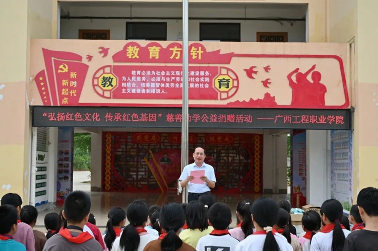 紅色精神照亮成長(zhǎng)路,公益善舉溫暖學(xué)子心。此次捐贈(zèng)活動(dòng)不僅是一次愛(ài)心的傳遞,是一次精神的洗禮,更是對(duì)教育事業(yè)的支持。廣西工程職業(yè)學(xué)院以實(shí)際行動(dòng)弘揚(yáng)了紅色革命精神,踐行了社會(huì)責(zé)任感和擔(dān)當(dāng),為地方教育事業(yè)注入了新的活力,激勵(lì)廣大青少年賡續(xù)紅色血脈,勤奮學(xué)習(xí),努力成長(zhǎng)為擔(dān)當(dāng)民族復(fù)興大任的時(shí)代新人。