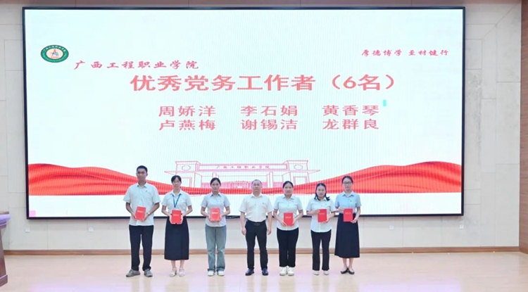 會上,學(xué)校紀(jì)委書記、副校長彭高彬宣讀了《中共廣西工程職業(yè)學(xué)院委員會關(guān)于表彰優(yōu)秀共產(chǎn)黨員、優(yōu)秀黨務(wù)工作者和先進基層黨組織的決定》。與會學(xué)校黨政領(lǐng)導(dǎo)班子分別為受表彰的優(yōu)秀共產(chǎn)黨員、優(yōu)秀黨務(wù)工作者和先進基層黨組織頒獎。