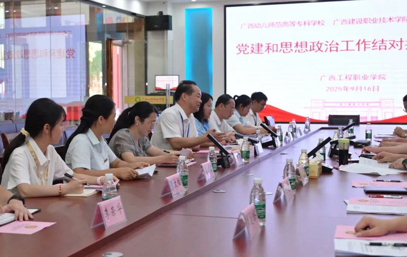 為深入學(xué)習(xí)貫徹習(xí)近平新時(shí)代中國(guó)特色社會(huì)主義思想及全國(guó)全區(qū)黨的建設(shè)工作會(huì)議精神,全面落實(shí)新時(shí)代黨的建設(shè)總要求與新時(shí)代黨的組織路線,切實(shí)深化高校間黨建和思想政治工作結(jié)對(duì)共建合作共贏,9月16日上午,我校與廣西幼兒師范高等??茖W(xué)校、廣西建設(shè)職業(yè)技術(shù)學(xué)院在學(xué)校圖書館大數(shù)據(jù)中心開展黨建和思想政治工作結(jié)對(duì)共建交流會(huì),共商校際黨建與思政工作結(jié)對(duì)共建發(fā)展新路徑。
