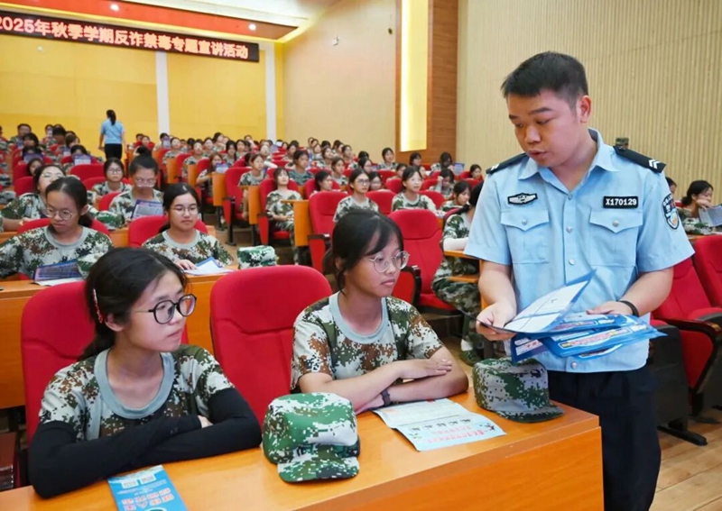 禁毒基地黃雪嬌警官深入剖析新型毒品偽裝形式及危害,提出"不接陌生人物品、不近高危場所、不交涉毒朋友"的"三不"防護策略,增強師生識毒防毒能力。