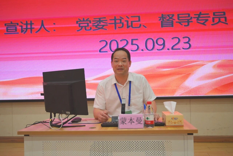 圖為黨委書(shū)記、政府督導(dǎo)專(zhuān)員蒙本曼作專(zhuān)題講座