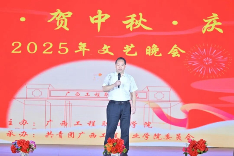 黨委書記、政府督導(dǎo)專員蒙本曼宣布2025 年廣西工程職業(yè)學(xué)院 “迎新生?賀中秋?慶國(guó)慶” 文藝晚會(huì)正式開始。