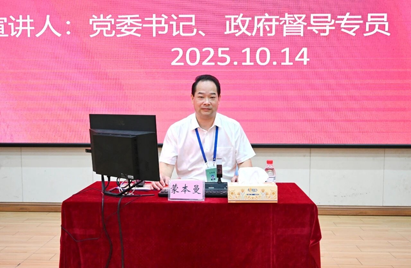 圖為黨委書記、政府督導(dǎo)專員蒙本曼作專題培訓(xùn)
