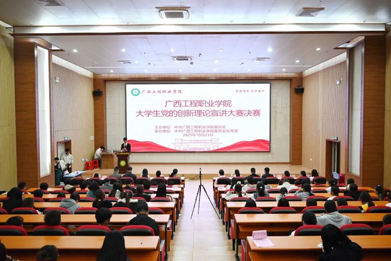 為進一步推動學(xué)習(xí)宣傳貫徹習(xí)近平新時代中國特色社會主義思想走深走實走心,增進我校學(xué)生對黨的創(chuàng)新理論的政治認同、思想認同、理論認同、情感認同,10月23日晚,廣西工程職業(yè)學(xué)院大學(xué)生黨的創(chuàng)新理論宣講大賽決賽在圖文信息大樓一樓學(xué)術(shù)報告廳舉行。學(xué)校黨委書記、政府督導(dǎo)專員蒙本曼出席現(xiàn)場,黨委辦公室、黨委宣傳部、各黨組織書記(副書記)及二級學(xué)院師生代表400多人到場觀賽。