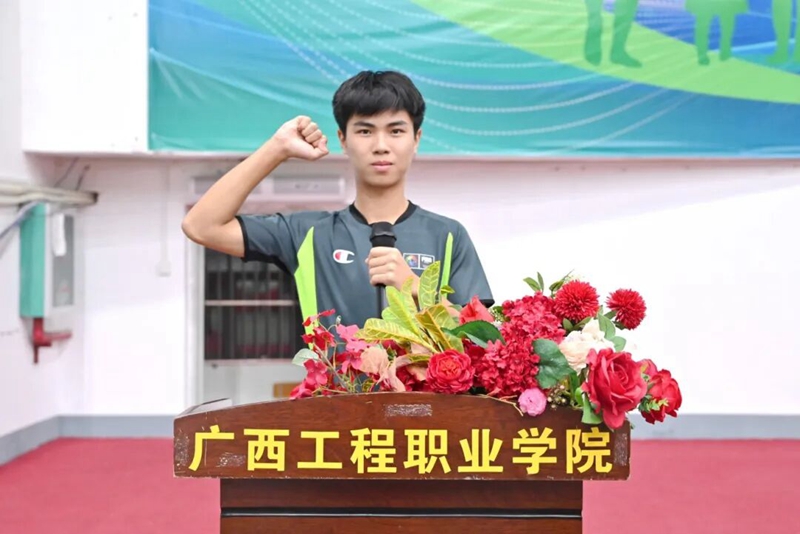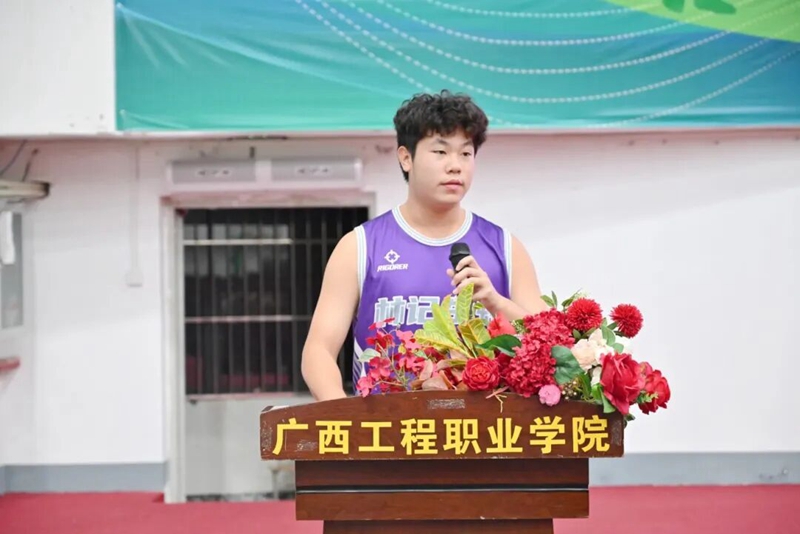 運動員代表黃新雄同學發(fā)言,他指出籃球是團隊協(xié)作、拼搏超越的精神象征,更是新生間聯(lián)結(jié)友誼、證明自我的舞臺。全體運動員將秉持“友誼第一,比賽第二”的精神,尊重裁判與對手,以堅韌意志和蓬勃朝氣投入賽事,享受運動快樂,書寫青春篇章。