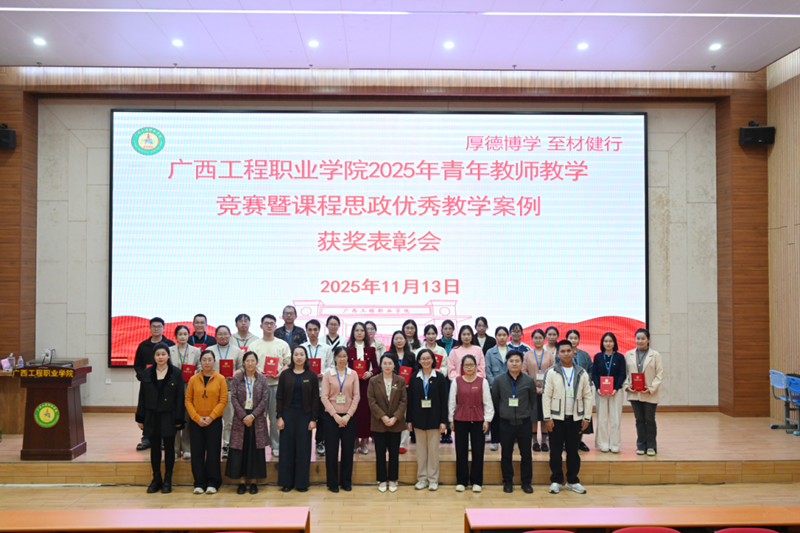 為深入落實(shí)立德樹人根本任務(wù),持續(xù)推進(jìn)課程思政建設(shè)走深走實(shí),全面提升青年教師教學(xué)能力與育人水平,表彰先進(jìn)典型、凝聚奮進(jìn)力量,11 月 13 日下午,廣西工程職業(yè)學(xué)院 2025 年青年教師教學(xué)競賽暨課程思政優(yōu)秀教學(xué)案例評選獲獎(jiǎng)表彰會(huì)在圖文信息中心一樓學(xué)術(shù)報(bào)告廳舉行。學(xué)校黨委副書記黃秋霞、教務(wù)處處長黃香琴、經(jīng)濟(jì)管理學(xué)院院長覃清香、藝術(shù)設(shè)計(jì)學(xué)院院長覃鳳姣、教育學(xué)院院長胡星萍、汽車與機(jī)電學(xué)院院長楊竟、馬克思主義學(xué)院副院長李麗詩、鐵道與航空學(xué)院副院長廖嬌、土木工程學(xué)院副院長陳春任出席大會(huì),全體任課教師參加會(huì)議。表彰會(huì)由教務(wù)處科長覃海梅主持。