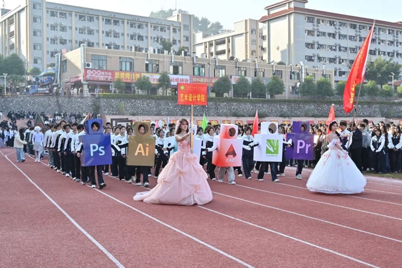 他們將PS、AI等設(shè)計(jì)軟件元素融入隊(duì)列,展現(xiàn)專業(yè)特色。步伐整齊,姿態(tài)昂揚(yáng),舉手投足間盡顯設(shè)計(jì)的靈動(dòng)與執(zhí)著。