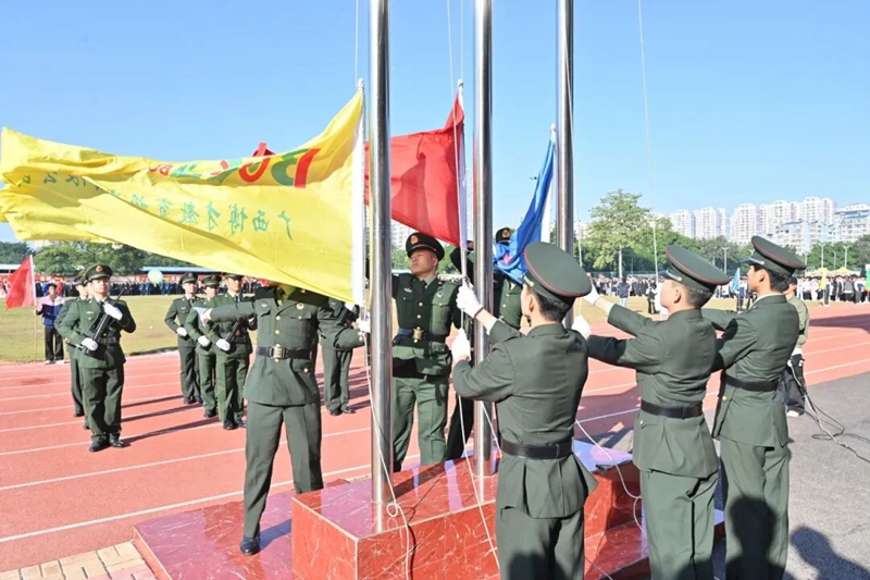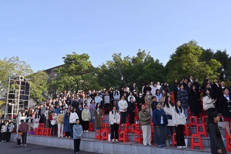 師生們肅立注目,五星紅旗在晨光中緩緩升起,激蕩著每位運(yùn)動(dòng)員心中的拼搏豪情。