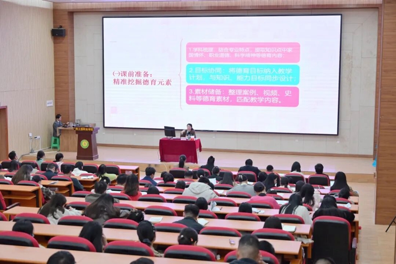 培訓(xùn)中,黃秋霞副書(shū)記結(jié)合各二級(jí)學(xué)院專(zhuān)業(yè)特色,分享了德育滲透的實(shí)踐方向。比如,教育學(xué)院可以將師德規(guī)范與職業(yè)素養(yǎng)融入師范實(shí)訓(xùn);經(jīng)濟(jì)管理學(xué)院可以把誠(chéng)信守法、商業(yè)倫理植入財(cái)經(jīng)教學(xué);汽車(chē)與機(jī)電學(xué)院要在工科實(shí)訓(xùn)中培育工匠精神與勞動(dòng)精神;鐵道與航空學(xué)院要緊扣行業(yè)規(guī)范強(qiáng)化敬業(yè)服務(wù)意識(shí);土木工程學(xué)院可以將工程責(zé)任與環(huán)保理念融入專(zhuān)業(yè)課程;藝術(shù)設(shè)計(jì)學(xué)院要以文化自信與原創(chuàng)精神賦能設(shè)計(jì)教學(xué)。她還特別厘清學(xué)科德育元素融入與課程思政的關(guān)系,為教師精準(zhǔn)實(shí)踐提供理論指引。