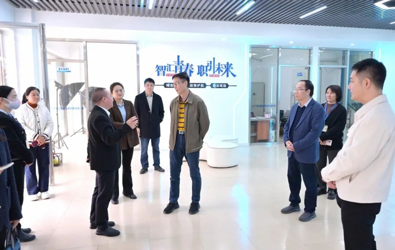 在就業(yè)服務(wù)站,彭高彬副校長向調(diào)研組介紹了站點運行機制、校企合作成果與畢業(yè)生就業(yè)跟蹤數(shù)據(jù)。姜杰處長詳細(xì)詢問了服務(wù)日常訪問、常見問題與數(shù)據(jù)共享情況,肯定了我校“精準(zhǔn)聚焦、專業(yè)賦能、服務(wù)暖心”的服務(wù)模式。