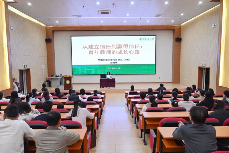 為深入學(xué)習(xí)貫徹習(xí)近平新時代中國特色社會主義思想,深化思想政治理論課改革創(chuàng)新,提升教師理論素養(yǎng)與思想境界,華南農(nóng)業(yè)大學(xué)馬克思主義學(xué)院孫曉暉博士于12月16日到我校作題為《從建立信任到贏得信任——青年教師的成長心路》的專題講座。講座在圖文信息大樓三樓學(xué)術(shù)報(bào)告廳舉行,200多名教師到場聆聽,由馬克思主義學(xué)院副院長李麗詩主持。