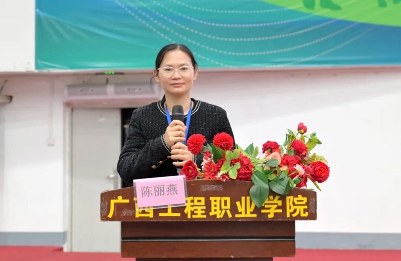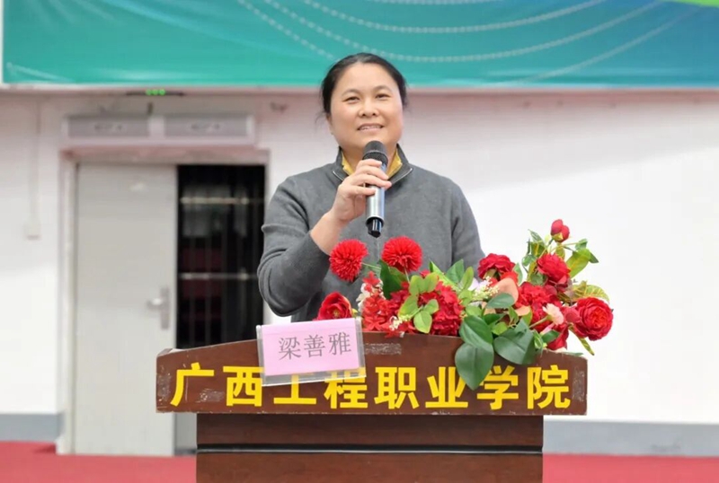 副校長梁善雅宣布廣西工程職業(yè)學(xué)院第七屆教職工氣排球比賽正式開始。