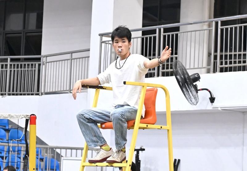 裁判員代表潘積豪宣誓,他代表全體裁判員莊嚴宣誓:恪守體育職業(yè)道德,遵守競賽規(guī)則與裁判紀律,秉持 “公平、公正、公開” 的原則,以專業(yè)的裁判素養(yǎng)、嚴謹?shù)墓ぷ鲬B(tài)度,精準執(zhí)裁、秉公裁決,不偏不倚、不徇私情。尊重每一位運動員的付出,尊重比賽、尊重規(guī)則、尊重觀眾,全力維護賽場秩序與競賽公平,為本次教職工氣排球比賽保駕護航,確保賽事順利進行。