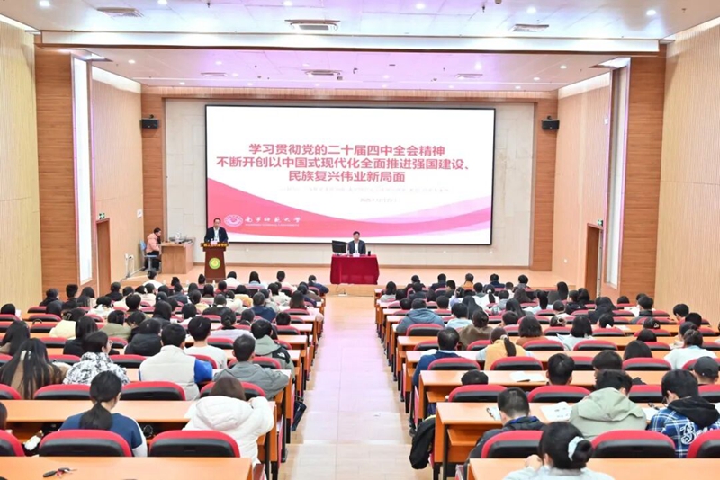 會上,陳洪波教授以《學習貫徹黨的二十屆四中全會精神,不斷開創(chuàng)以中國式現(xiàn)代化全面推進強國建設(shè)、民族復興偉業(yè)新局面》為題,圍繞深刻認識黨的二十屆四中全會的重大意義、準確把握“十五五”時期在基本實現(xiàn)社會主義現(xiàn)代化進程中的重要地位、深刻領(lǐng)會“十五五”時期經(jīng)濟社會發(fā)展的指導方針和主要目標、全面理解“十五五”時期經(jīng)濟社會發(fā)展的戰(zhàn)略任務(wù)和重大舉措以及堅持和加強黨的全面領(lǐng)導,凝聚起推進中國式現(xiàn)代化的磅礴力量等五個方面內(nèi)容,以深厚的理論素養(yǎng)、寬廣的學術(shù)視野和生動的語言表達,全面系統(tǒng)地梳理了黨的二十屆四中全會的核心要義、精神實質(zhì)、豐富內(nèi)涵與實踐要求。他緊密結(jié)合當前國內(nèi)外形勢與最新時政熱點、最新前沿科技信息,深刻闡釋了黨的二十屆四中全會提出的部署和要求。