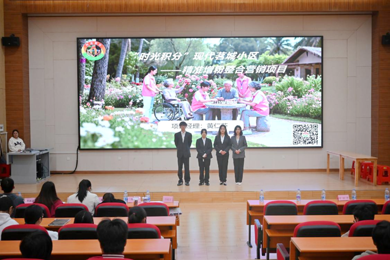 圖為市場營銷技能比賽“時光積分”團(tuán)隊成員展示項目