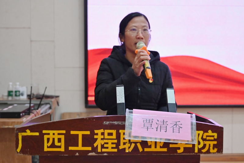 圖為經(jīng)濟(jì)管理學(xué)院黨支部書記、院長覃清香為大賽開幕式致辭