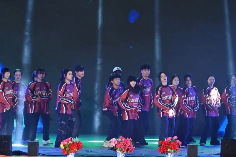 圖為現(xiàn)代舞《歡歌賀新春》(表演者:民族舞協(xié)會(huì) 汽車(chē)與機(jī)電學(xué)院學(xué)生會(huì) 羅桉桐 覃銳等)