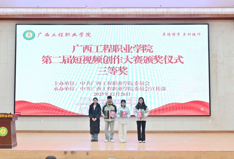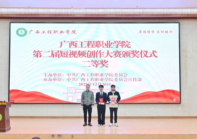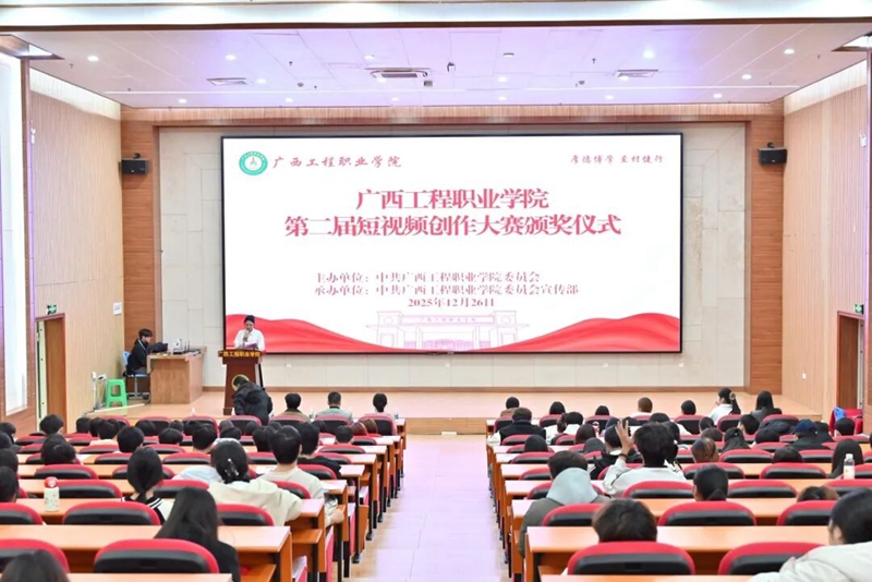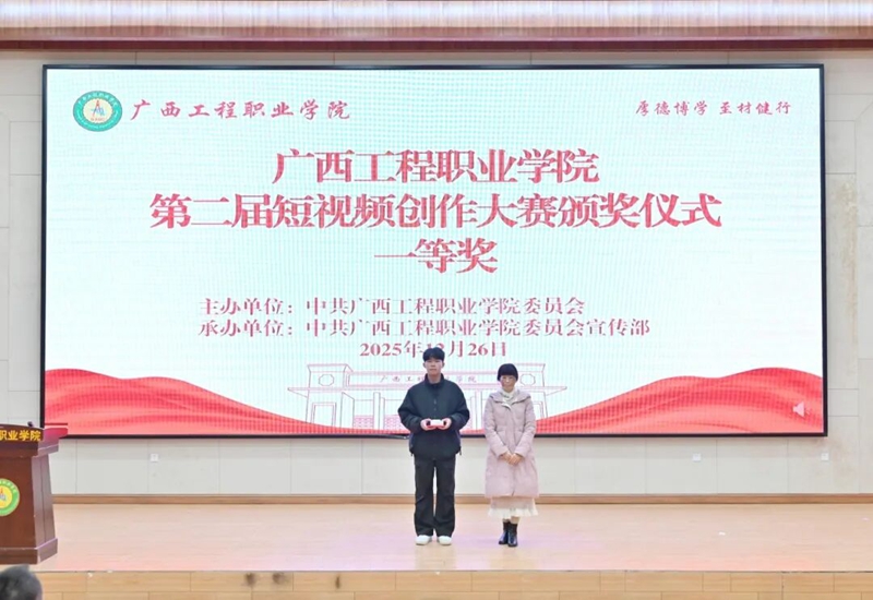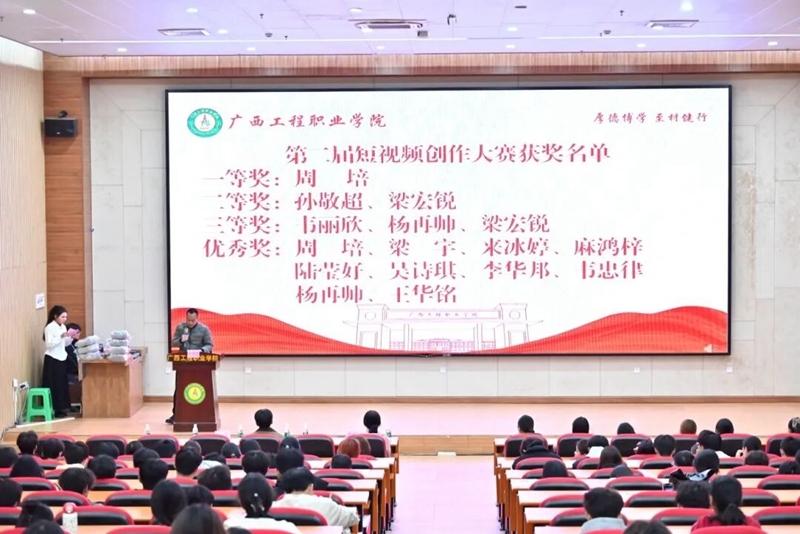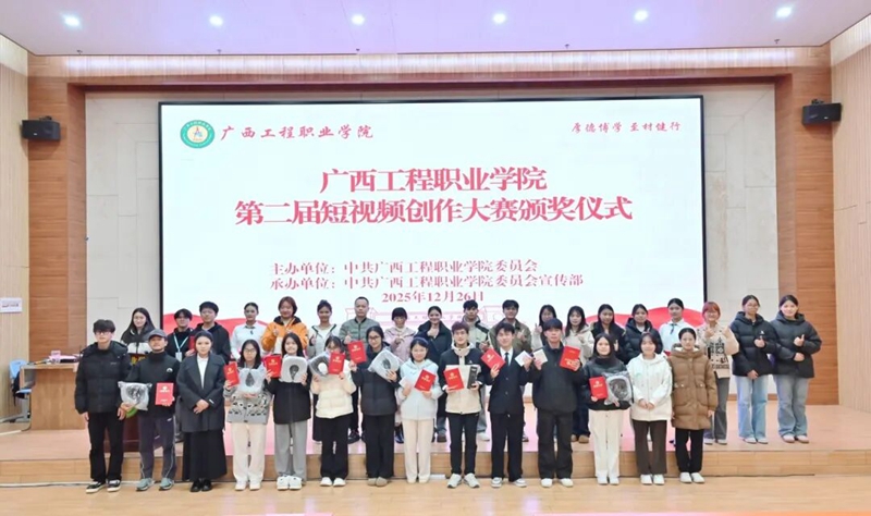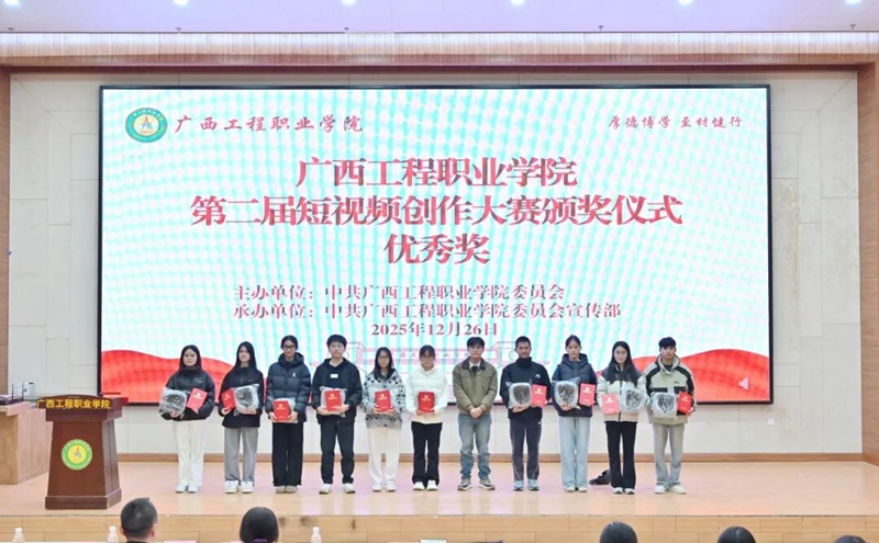 近日,廣西工程職業(yè)學院“遇見工程,青春最young”——第二屆校園短視頻創(chuàng)作大賽頒獎儀式在圖文信息大樓一樓學術報告廳舉行。學校黨委宣傳部、新聞中心負責人及部門教師代表,各二級學院、學生社團代表參加頒獎儀式。