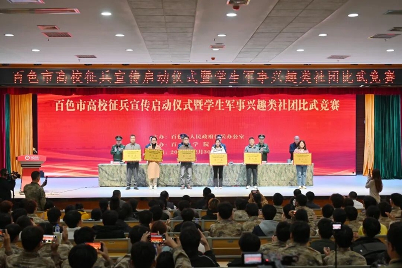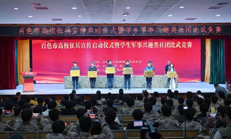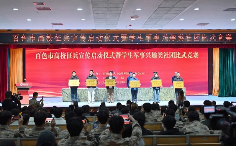 百色市高校征兵宣傳啟動儀式暨學(xué)生軍事興趣類社團比武競賽于2025年12月29日-30日在百色學(xué)院澄碧湖校區(qū)舉行。本次活動旨在激發(fā)廣大高校學(xué)子投身國防、報效祖國的熱情,同時展示各校軍事類社團的建設(shè)成果與青春風(fēng)采。廣西工程職業(yè)學(xué)院選派精銳學(xué)生軍事興趣社團代表隊參賽,憑借過硬的軍事素養(yǎng)和昂揚的拼搏精神,在激烈的角逐中脫穎而出,以優(yōu)異表現(xiàn)榮獲團體總成績第一名的佳績,成為賽場上一道亮麗的風(fēng)景線。