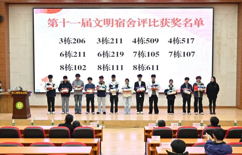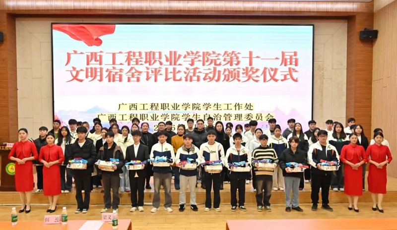 典禮上,學生工作處科長梁義平宣讀了《關于表彰廣西工程職業(yè)學院第十一屆文明宿舍的決定》,共有55間宿舍獲評“文明宿舍”稱號。在熱烈的掌聲中,學生工作處副處長梁欣欣及各學院教師代表為獲獎宿舍代表頒發(fā)榮譽證書和獎品。每一張證書背后,凝聚的是同學們對共同家園的用心營造,更是校園文明風尚的具體體現(xiàn)。