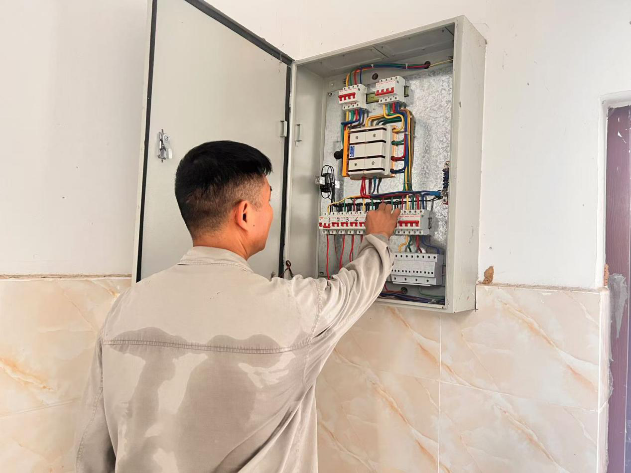 圖為電工師傅檢查電箱
