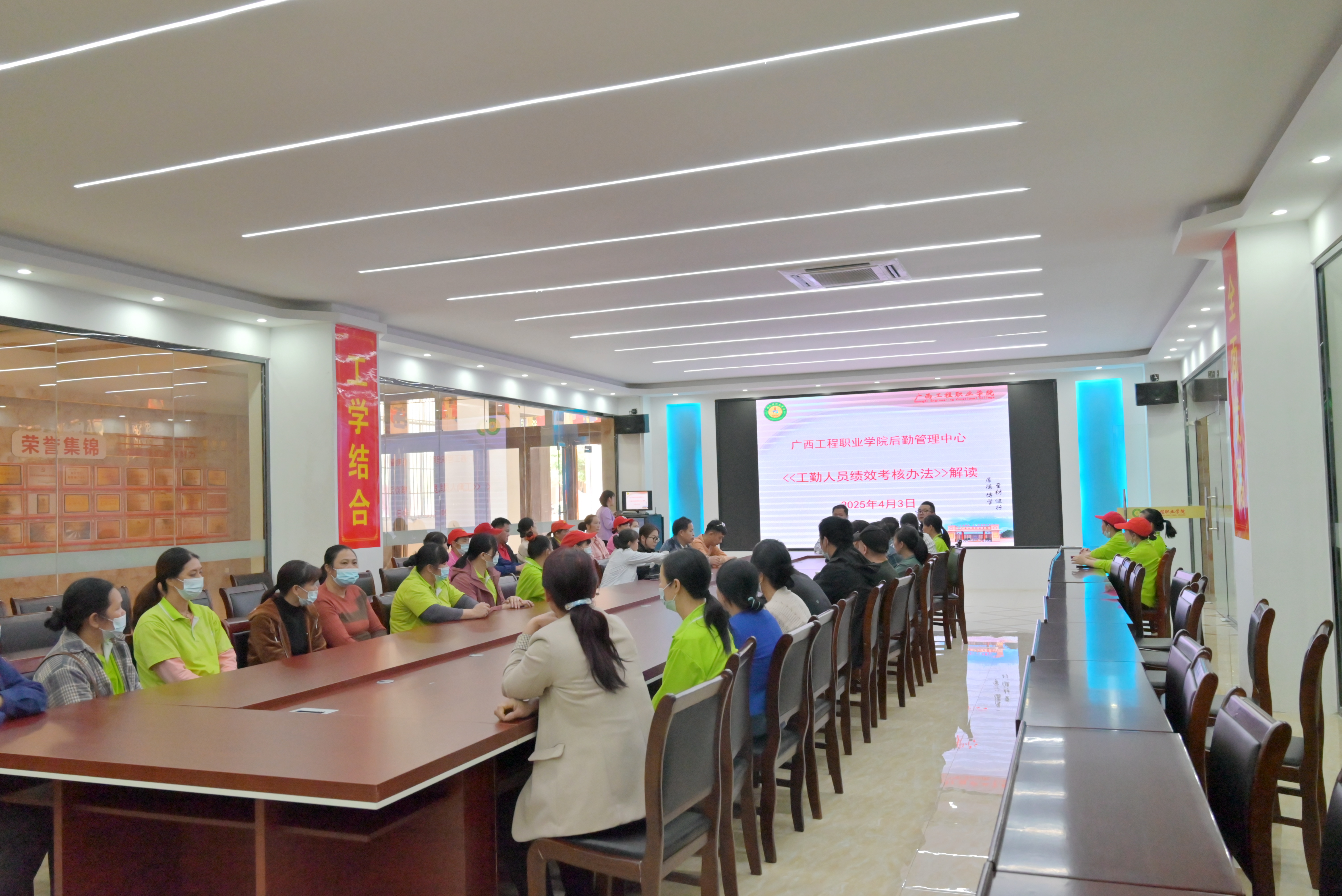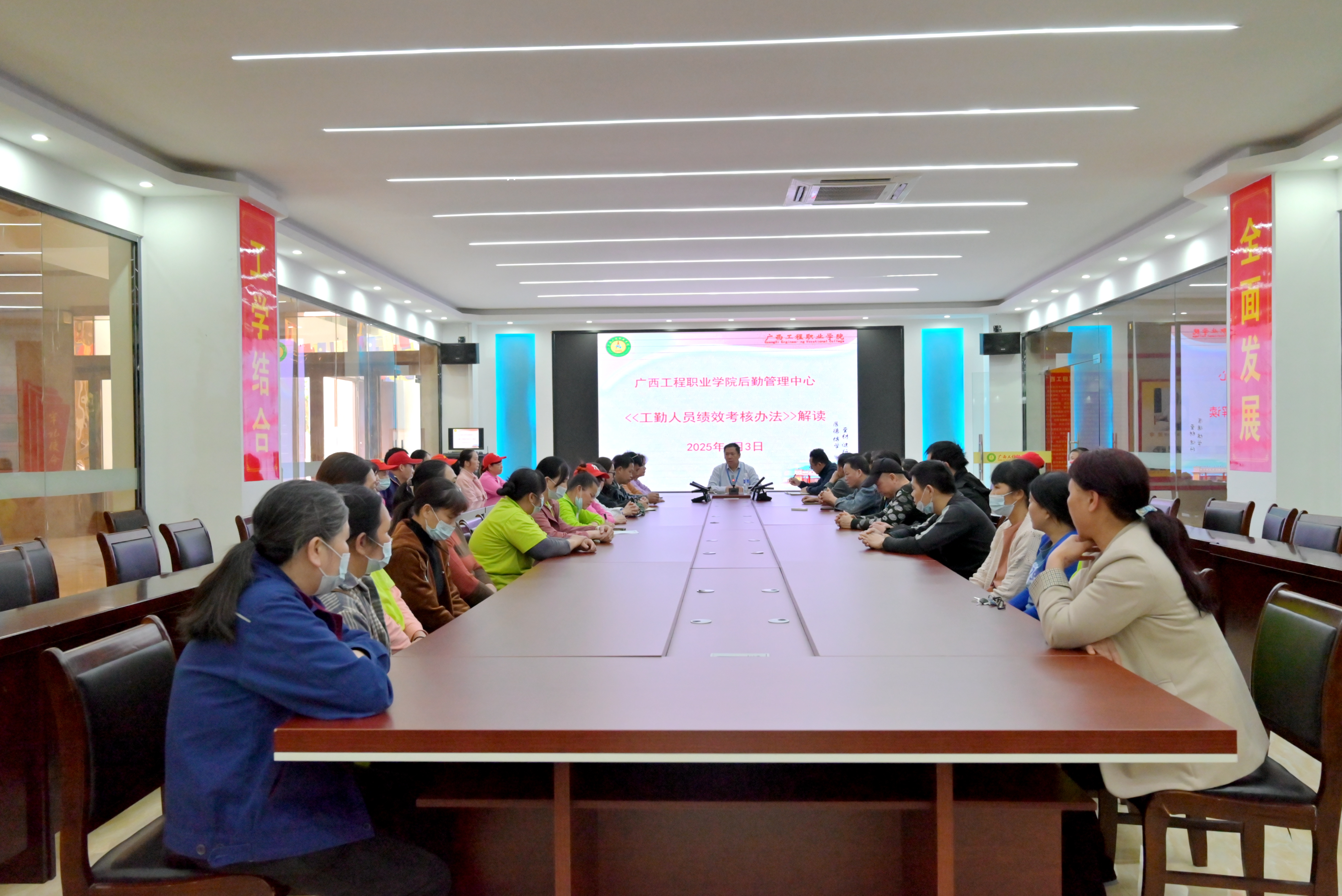 為進(jìn)一步規(guī)范工勤人員績效考核管理,提升工作效能和服務(wù)水平,我校后勤管理中心于4月3日在圖書館會議室召開了《工勤績效考核辦法》專題解讀會議。會議由后勤管理中心負(fù)責(zé)人劉兆兵主任主持召開,水電保潔綠化科科長李德勝、膳食科科長黃桂芬及全體工勤人員參加了會議。