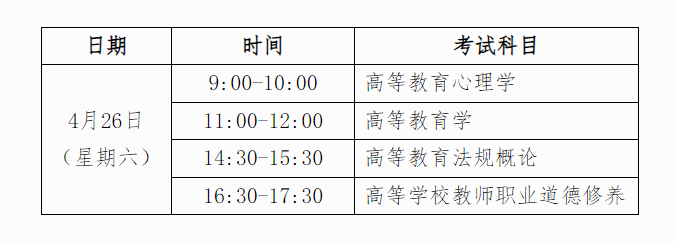 (二)《高等教育心理學(xué)》《高等教育學(xué)》《高等教育法規(guī)概論》《高等學(xué)校教師職業(yè)道德修養(yǎng)》4門科目考試成績的合格分?jǐn)?shù)線均設(shè)定為60分。