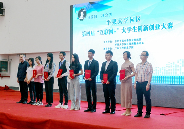 平果市大學(xué)園區(qū)黨工委、管理服務(wù)中心領(lǐng)導(dǎo),百色學(xué)院、廣西幼兒師范高等專(zhuān)科學(xué)校、廣西培賢國(guó)際職業(yè)學(xué)院、河池巴馬國(guó)際養(yǎng)生旅游學(xué)校及我校的領(lǐng)導(dǎo)及師生代表以及平果大學(xué)園區(qū)創(chuàng)業(yè)孵化基地、廣西來(lái)聘信息科技有限公司等企業(yè)代表出席決賽現(xiàn)場(chǎng)。
