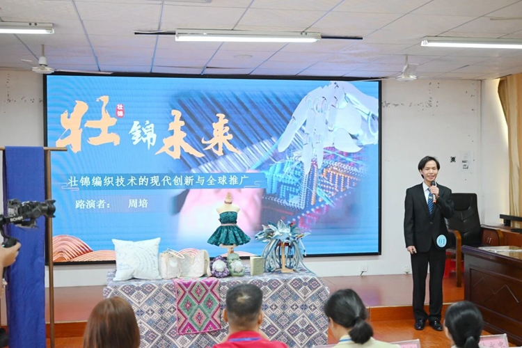 圖為《壯錦未來—壯錦編織技術(shù)的現(xiàn)代創(chuàng)新與全球推廣》項(xiàng)目展示