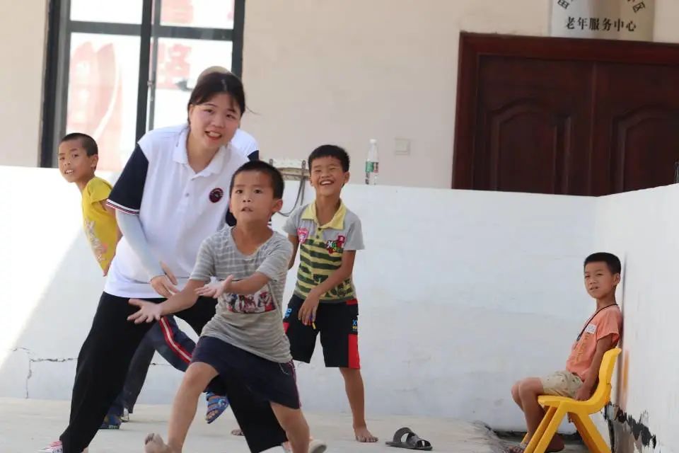 第一次見面,雙方都很新奇激動。我們與小朋友親切交談,詢問他們學(xué)習(xí)、生活及平時的文體活動等情況,關(guān)心愛護他們,并以引導(dǎo)參與游戲的方式,拉近與留守兒童之間的情感,給他們帶來歡樂。