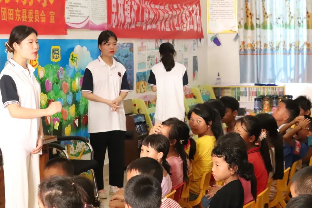 在安全教育課堂上,廣工院學(xué)子瞬間變成專業(yè)的小老師,為留守兒童普及防電、防水、防火、防震和安全交通等安全知識,并且融入心理疏導(dǎo)、急救科普等知識。教學(xué)過程中,我們的隊員觀察到大部分兒童喜歡光腳走路,就提醒孩子們走路時注意腳下有沒有踩到釘子和碎玻璃。切實做到關(guān)愛留守兒童,助力其健康成長。