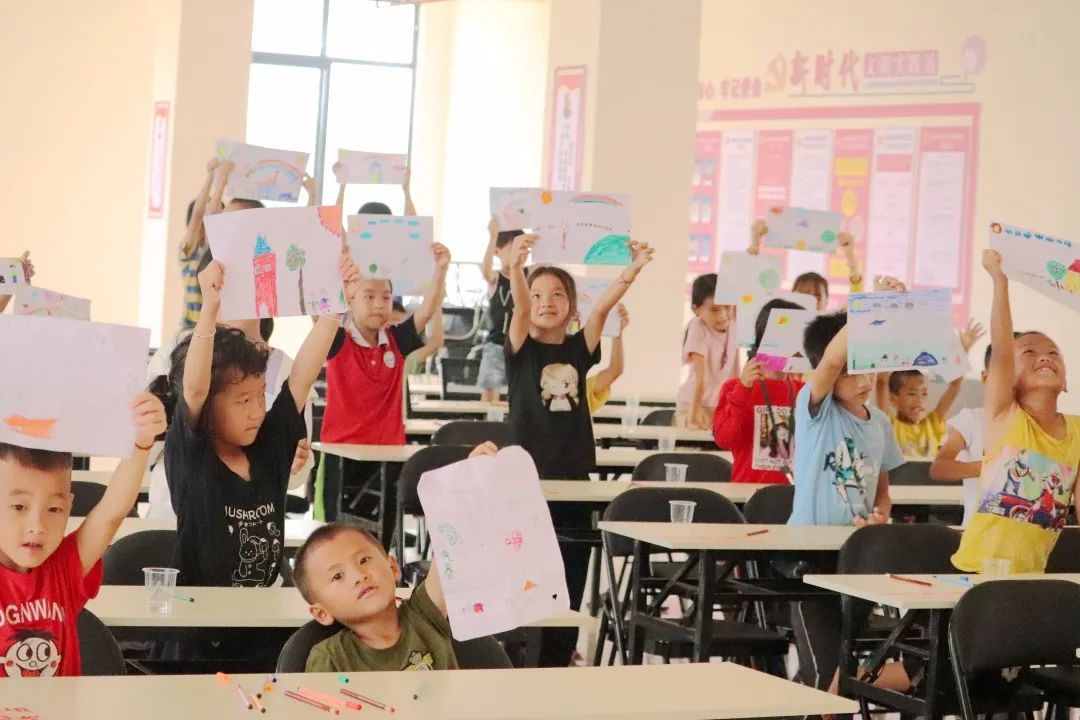 我們的實(shí)踐團(tuán)成員們發(fā)揮專(zhuān)業(yè)優(yōu)勢(shì),以生動(dòng)有趣又淺顯的語(yǔ)言以及邊講邊畫(huà)、隨堂指導(dǎo)、點(diǎn)評(píng)示范等形式,為孩子們帶來(lái)了不一樣的美術(shù)課,激發(fā)了孩子們的繪畫(huà)興趣,引導(dǎo)孩子們創(chuàng)作出充滿(mǎn)童真和無(wú)限想象力的繪畫(huà)作品。