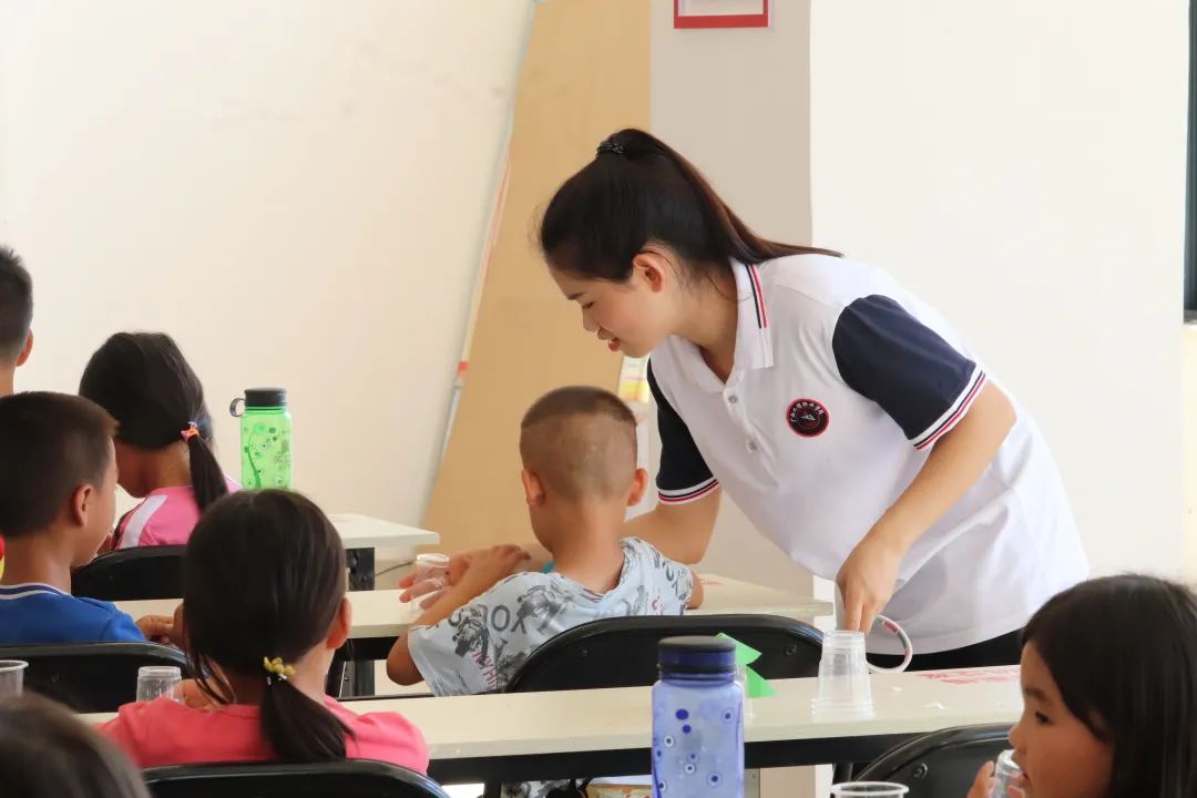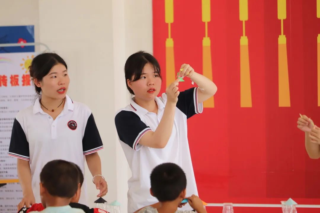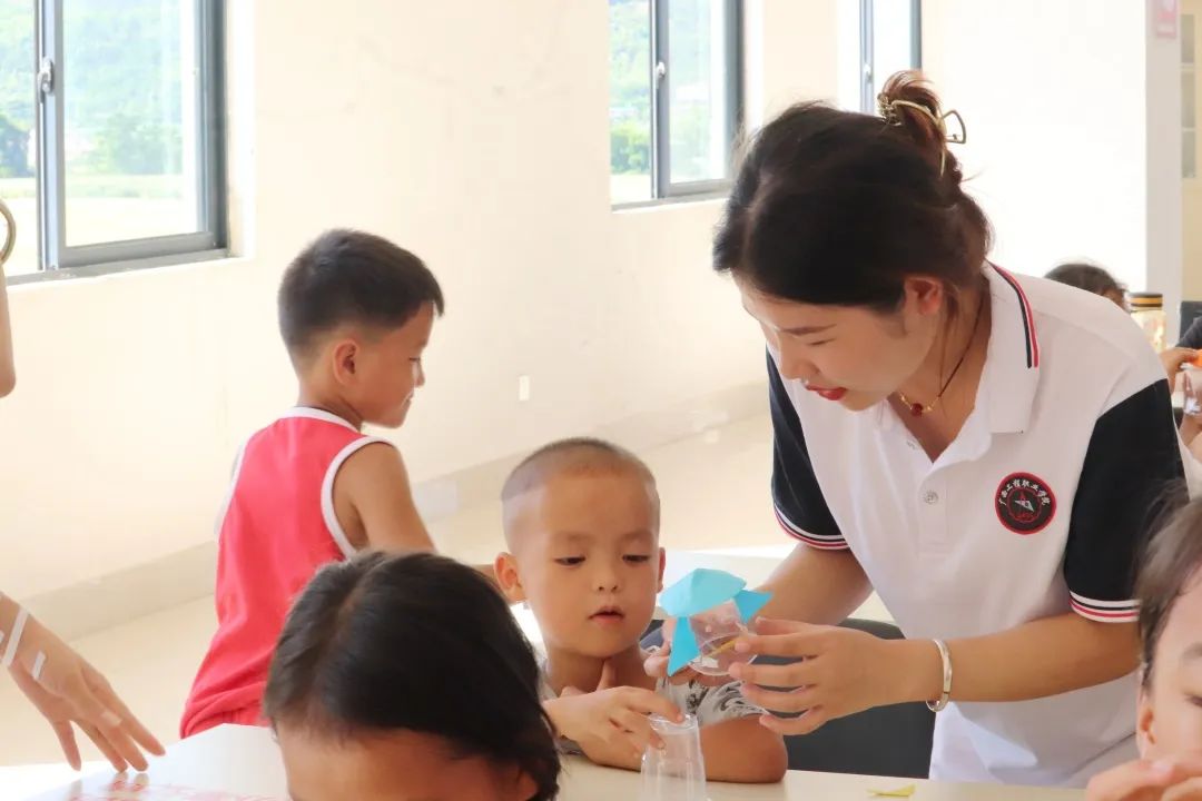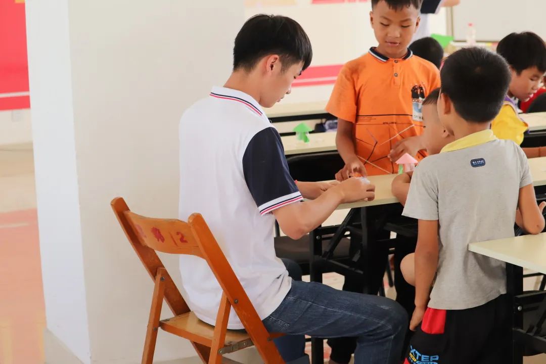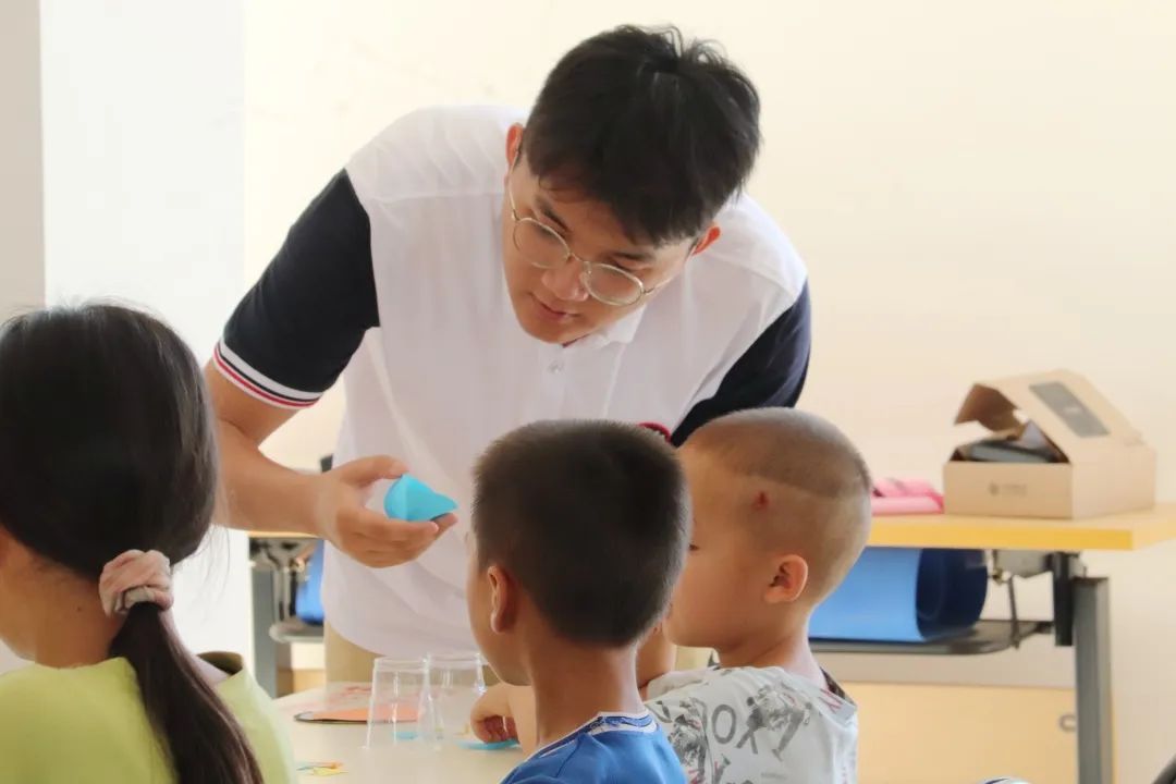 孩子們在進行手工制作時遇到各種各樣的問題,但是,我們的團隊成員都很耐心向孩子們講述步驟,指導(dǎo)示范,幫助孩子們完成手工作品。