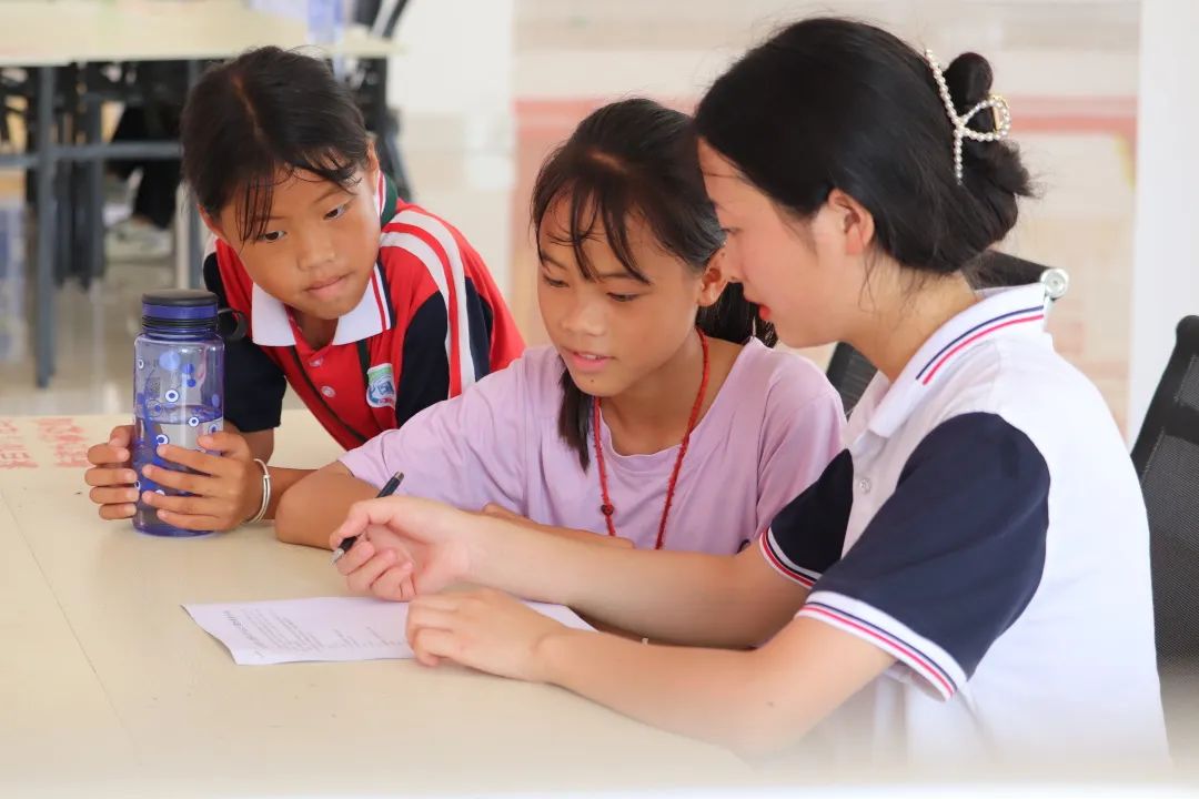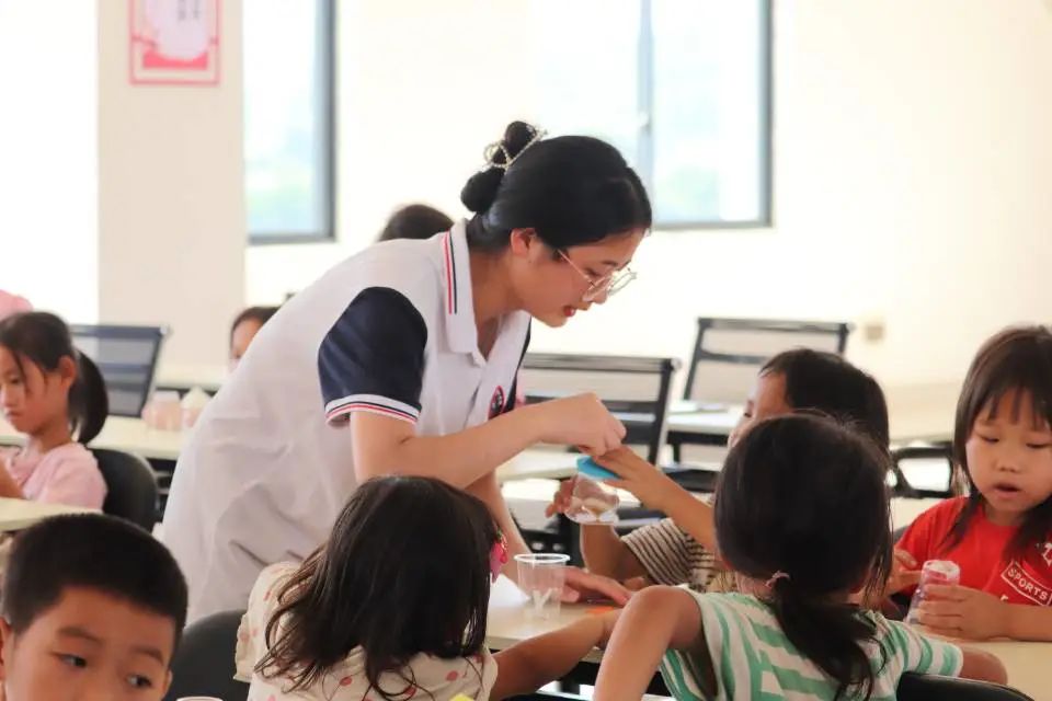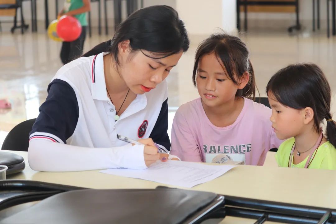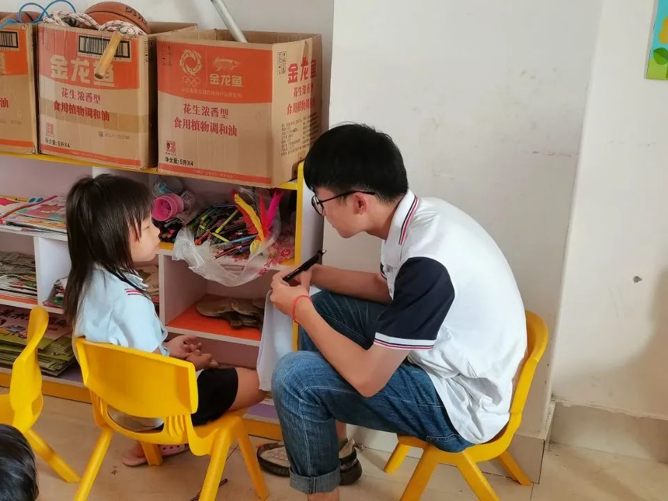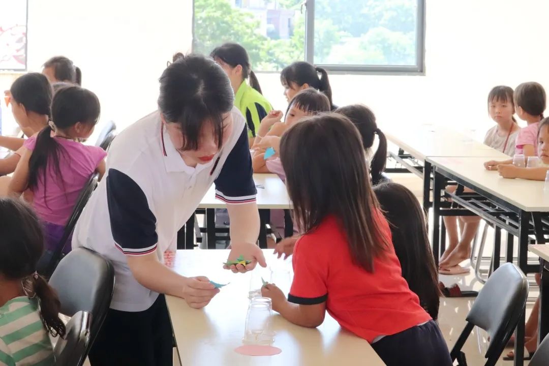 孩子們在進行手工制作時遇到各種各樣的問題,但是,我們的團隊成員都很耐心向孩子們講述步驟,指導(dǎo)示范,幫助孩子們完成手工作品。