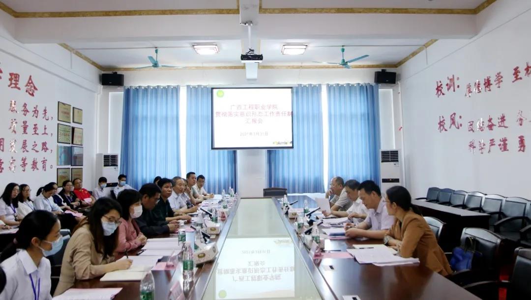 會上,呂偉斌書記從意識形態(tài)制度建設(shè)、組織建設(shè)、陣地建設(shè)、經(jīng)費(fèi)保障、隊(duì)伍建設(shè),配備輔導(dǎo)員、思政課專任教師、專職心理健康教育教師以及落實(shí)輔導(dǎo)員、思政課專任教師評價激勵機(jī)制等方面匯報了我校貫徹落實(shí)意識形態(tài)工作責(zé)任制情況。