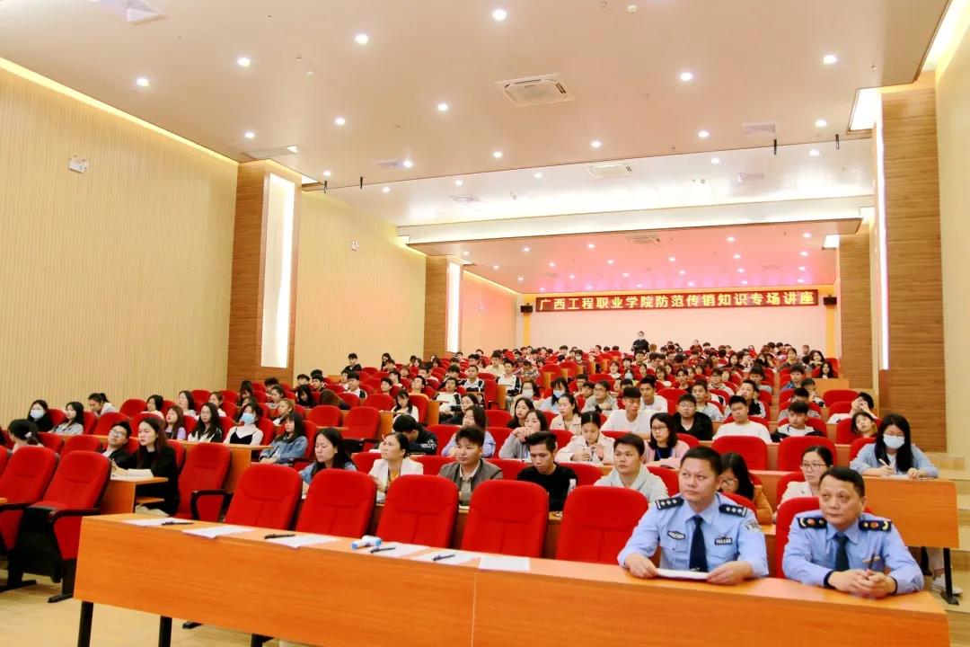學(xué)校黨委副書記、副校長(zhǎng)胡細(xì)木,平果市打擊傳銷工作領(lǐng)導(dǎo)小組辦公室副主任、市場(chǎng)監(jiān)督管理局副局長(zhǎng)文起泉,平果市打擊傳銷工作領(lǐng)導(dǎo)小組辦公室副主任、公安局副局長(zhǎng)陸榮康,平果市教育局安穩(wěn)辦副主任李文天,學(xué)校校長(zhǎng)助理黃秋霞出席講座。