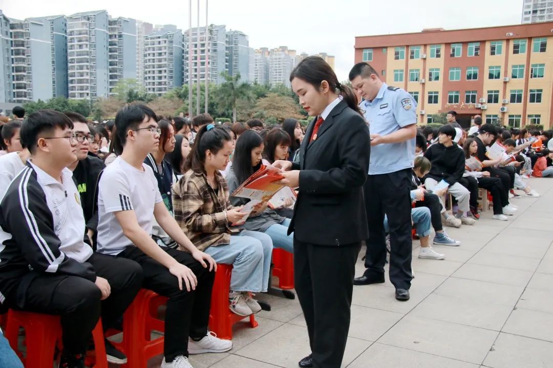 平果市人民法院刑事審判庭庭長(zhǎng)、一級(jí)法官黃亮庭長(zhǎng)作“珍愛生命,遠(yuǎn)離犯罪”專題講座。講座上,黃亮庭長(zhǎng)結(jié)合典型案例,深入淺出、生動(dòng)形象地給全校師生上了一堂生動(dòng)的法制教育課,教育同學(xué)們要知法、學(xué)法、守法,學(xué)會(huì)運(yùn)用法律維護(hù)自己的合法權(quán)益、預(yù)防犯罪、打擊犯罪及自我防范和保障安全。