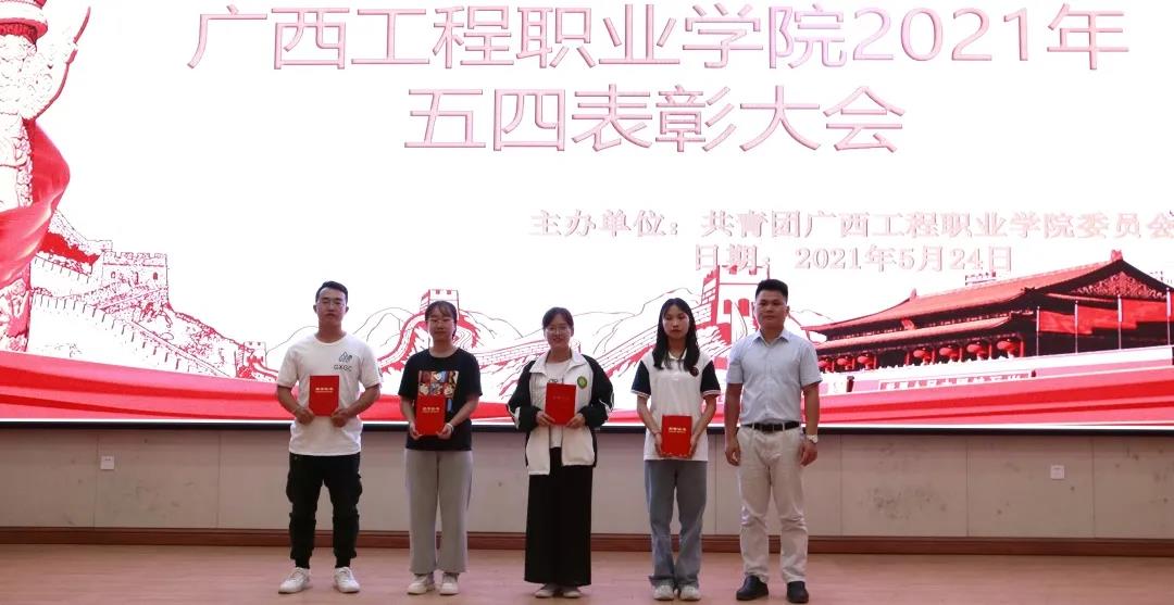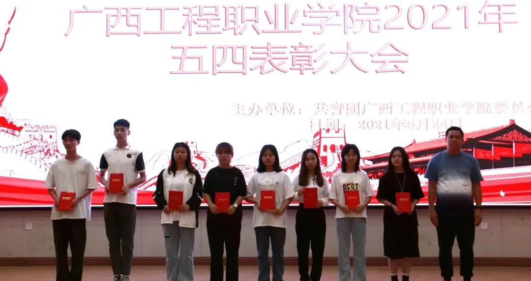 為發(fā)揚(yáng)“五四”傳統(tǒng),弘揚(yáng)“五四”精神,并以此樹立典型,表彰先進(jìn),進(jìn)一步推動(dòng)各項(xiàng)工作和建設(shè)加快發(fā)展,2021年5月24日下午18:30在廣西工程職業(yè)學(xué)院圖文信息大樓一樓報(bào)告廳舉行2021年五四表彰大會(huì)。會(huì)議由校團(tuán)委黃詩(shī)晴老師主持,參加會(huì)議的有校長(zhǎng)助理黃秋霞老師、學(xué)工處副處長(zhǎng)吳發(fā)德老師、土木工程學(xué)院副院長(zhǎng)李麗詩(shī)、國(guó)防科技學(xué)院副院長(zhǎng)梁欣欣、鐵道與航空學(xué)院副院長(zhǎng)林騫、汽車與機(jī)電學(xué)院副院長(zhǎng)彭家官、經(jīng)濟(jì)管理學(xué)院副院長(zhǎng)覃清香、五年大專部部長(zhǎng)凌小平、校團(tuán)委陳威老師、校團(tuán)委梁秋霞老師、各二級(jí)學(xué)院分團(tuán)委書記以及五年大專部、附屬中學(xué)團(tuán)委書記。