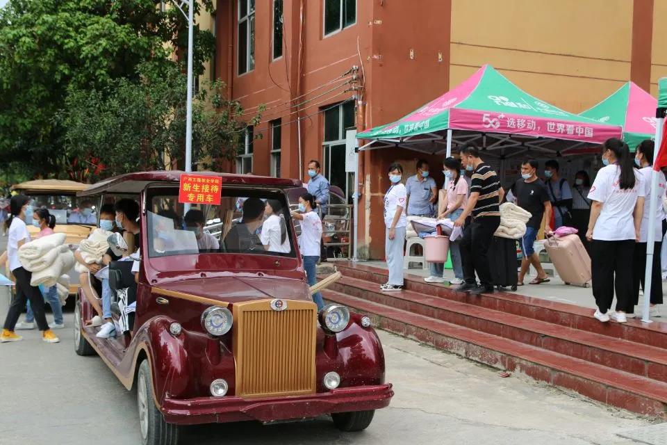 接送新生回到學(xué)校大門