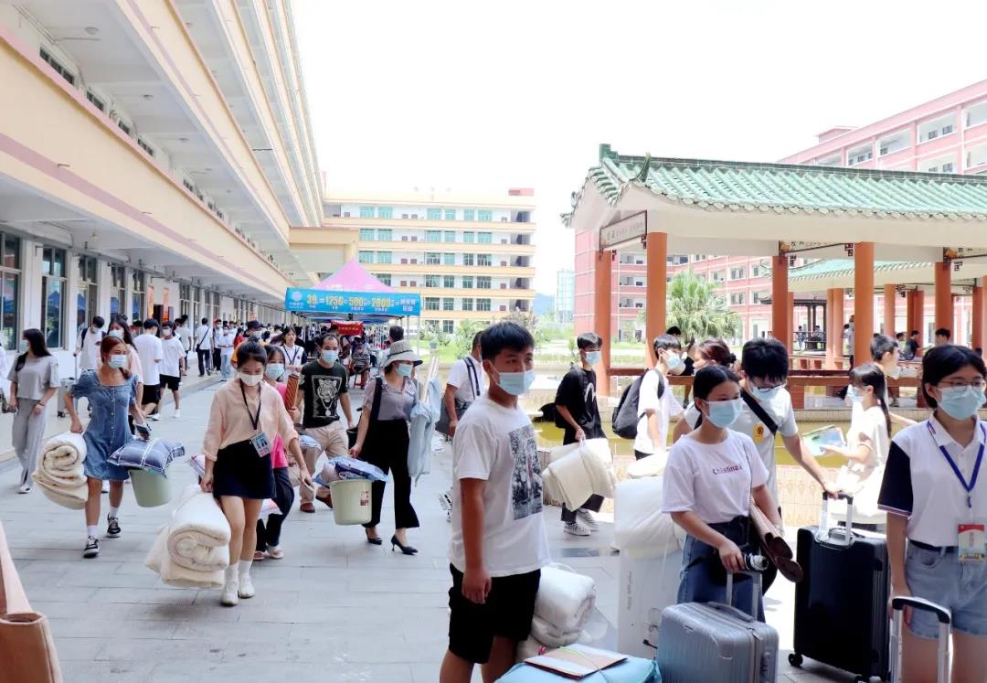 學(xué)長學(xué)姐幫助新同學(xué)搬行李到新宿舍