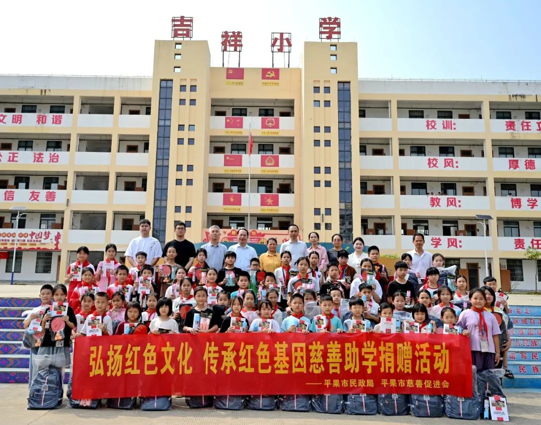 為弘揚(yáng)紅色精神,踐行公益使命,助力教育事業(yè)發(fā)展,2025年4月29日,廣西工程職業(yè)學(xué)院赴平果市吉祥小學(xué)開展“弘揚(yáng)紅色文化 傳承紅色基因”慈善助學(xué)捐贈(zèng)活動(dòng),捐贈(zèng)圖書及學(xué)習(xí)用品等,為孩子們送去了學(xué)習(xí)物資與關(guān)懷,希望孩子們通過紅色文化的浸潤,博覽群書,增長知識(shí)面,奮發(fā)向上,實(shí)現(xiàn)人生夢想?;顒?dòng)由平果市民政局與平果市慈善促進(jìn)會(huì)主辦。我校副校長黃德偉、團(tuán)委副書記李麗清及教師代表參加了捐贈(zèng)活動(dòng)