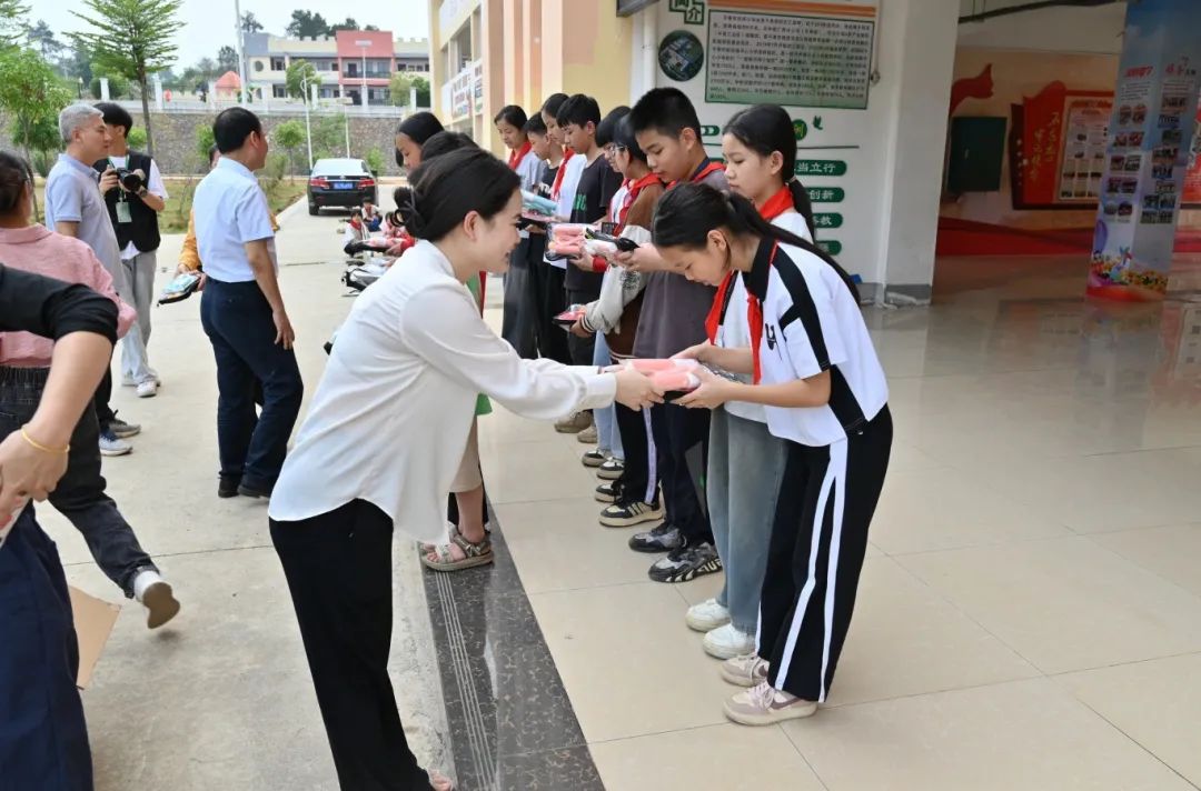 捐贈(zèng)儀式現(xiàn)場溫情涌動(dòng),老師們化身“愛心使者”,親手將承載著關(guān)懷與期許的物資遞到受助學(xué)子手中。一本本紅色書籍傳遞精神力量,一件件學(xué)習(xí)用品飽含殷切期望,每一份物資都承載著對學(xué)子成長的深情祝福,為他們點(diǎn)亮求學(xué)路上的溫暖之光。