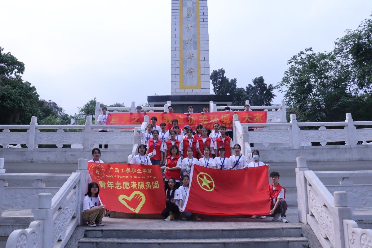 2021年4月24日廣西工程職業(yè)學(xué)院志愿者服務(wù)團開展了以“藍天之下你我他·優(yōu)美環(huán)境靠大家”為主題的校外清潔活動,主要負責(zé)清潔校外平果烈士陵園、馬頭山公園的白色垃圾、煙頭。