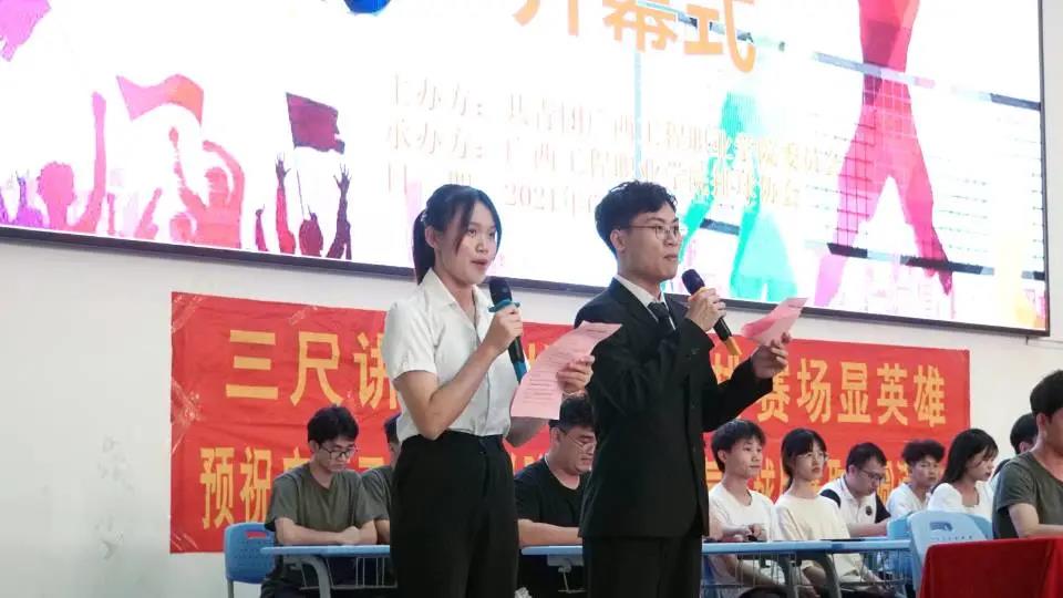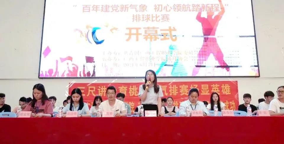 為進(jìn)一步加強(qiáng)同學(xué)們之間的凝聚力,展示出新時(shí)代大學(xué)生的蓬勃朝氣和體育熱情,以青春活力迎建黨百年,2021年6月7日下午18:30,由校團(tuán)委主辦、排球協(xié)會(huì)承辦的以“百年建黨新氣象,初心領(lǐng)航踏新程”為主題的排球比賽開幕式活動(dòng)在校體育館舉行。出席會(huì)議的領(lǐng)導(dǎo)、嘉賓有:校長助理黃秋霞老師、學(xué)工處副處長吳發(fā)德老師、校團(tuán)委老師、各二級(jí)學(xué)院分團(tuán)委書記、校級(jí)社團(tuán)代表及各參賽隊(duì)員。開幕式由吳水華、陳植輝同學(xué)主持。